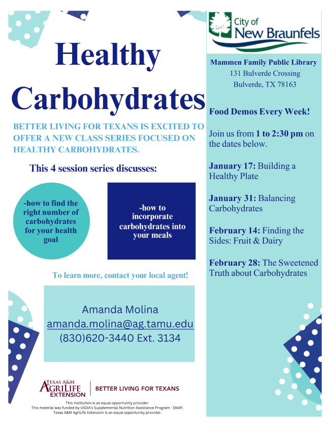 Better Living for Texans is excited to offer this new class series focused on healthy carbohydrates.