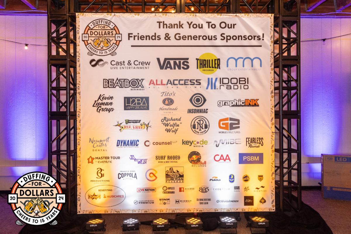 Sponsors: Hole-In-One: Cast & Crew Live Entertainment ● Premium Golf Gift: PSBM ● Pin Flags: All Access Staging ● Event Hats: Pukka ● Event Tshirts: Killer Merch ● Putting Contest: California Entertainer Coach Leasing ● Dinner: Richard “Wolfie” Wolf ● Lunch: idobi Radio ● Golf Carts: M&M Group ● Beverage Cart: Saint Rocke ● Shoes: Vans ● Bag Tags: Access Event Solutions ● Bloody Mary Bar: Tito’s Handmade Vodka ● Golf Balls: Pure Noise Records