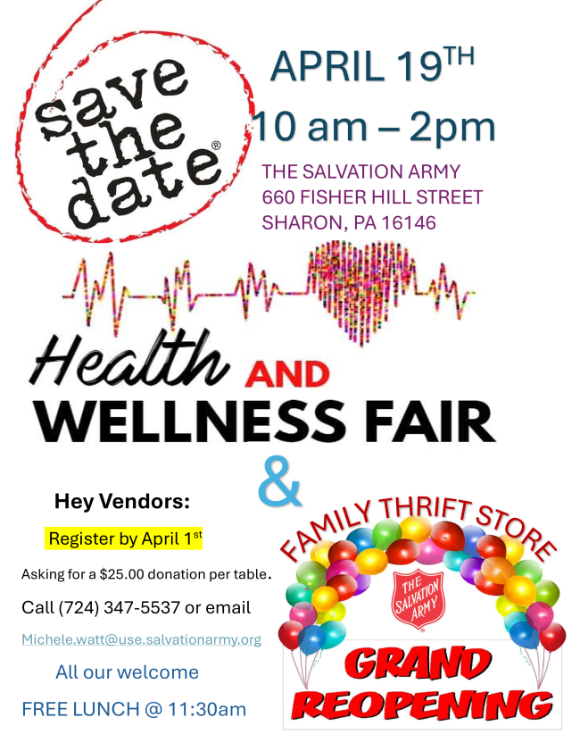 Join The Salvation Army for a special Health and Wellness Fair and celebrate their grand reopening of the Family Thrift Store!