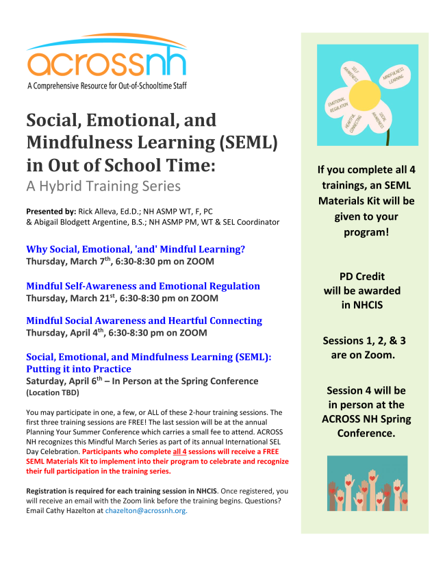 Social, Emotional, and Mindfulness Learning (SEML) in Out of School Time: A Hybrid Training Series (3 Trainings Left!) | |