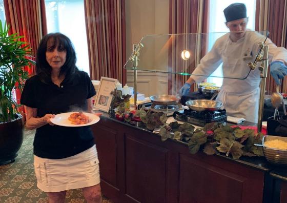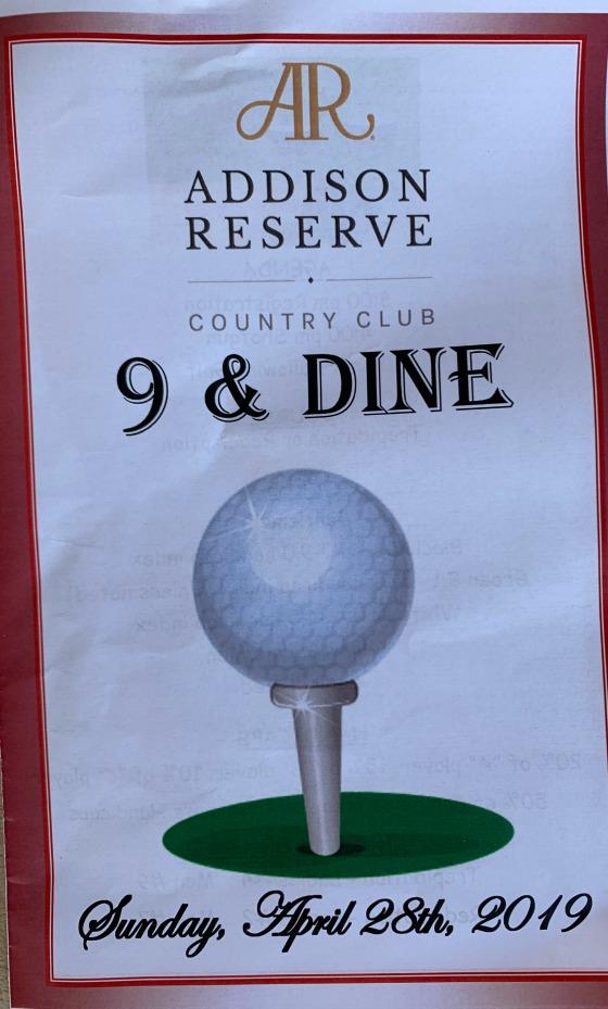 Saturday evening the Addison Reserve Clubhouse was closed to all members & guests due to a magnificent wedding being held there, given by Shelley & Golda Golub in honor of their granddaughter. Hence, those not invited had to find other sources for dinner. We chose The Farmer's Table, located in the Wyndham Hotel and owned by one of our own, Mitch Robbins. The food was not only delicious, but the ambiance was great, as was a combo that entertained the dinner guests who chose to dine poolside on a incredible evening.