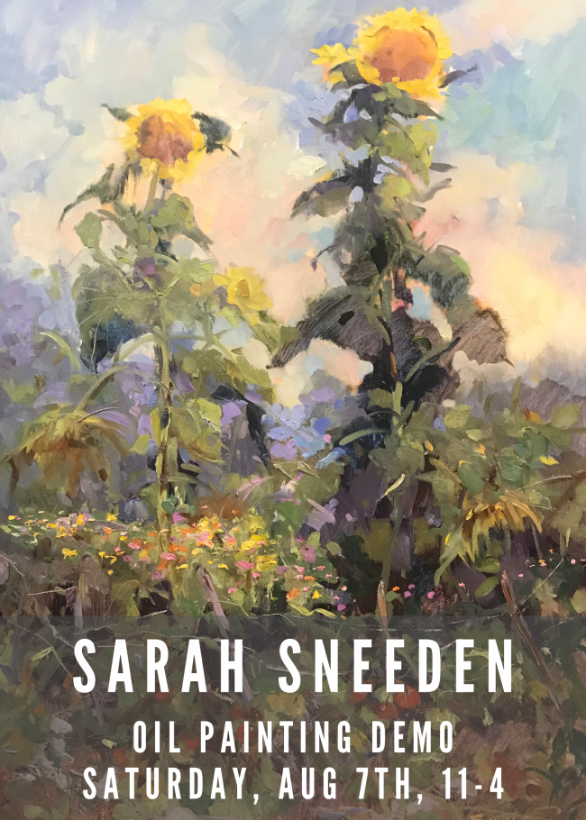 Join us in the gallery on Saturday, August 2nd for an oil painting demonstration with our August featured artist, Sarah Sneeden.
