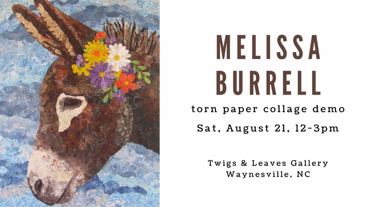 Melissa Burrell has lived in Haywood County all her life. She has been a self-employed custom picture framer and antiques dealer over 30 years. She has always enjoyed being an artist and holds degrees in Fine Arts and Business. Melissa works in several mediums including acrylics, colored pencil, graphite, fiber art and basket making.