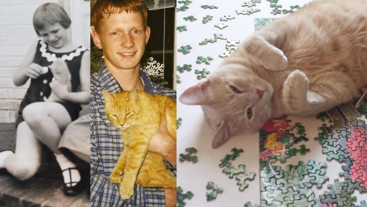 Growing up there was a full gamut of pets in our household including raccoons, rabbits, a bear, along with all sorts of dogs and cats. I remember asking our father if we could get a monkey. That did not happen, which was probably a good idea. My first pet was an orange, tabby cat named Tiger. An outdoor cat, he was a neighborhood cruiser, arriving home for dinner of a can of Friskies then off for some nightlife. One time he was gone for two years, showing up like nothing had happened.