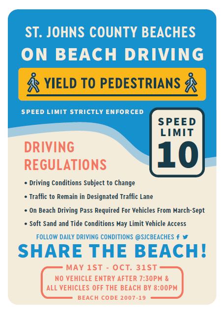 St. Johns County staff will close gates at 7:30 p.m. and reopen at 8 a.m. to allow nesting sea turtles to have a safe beach throughout the night.