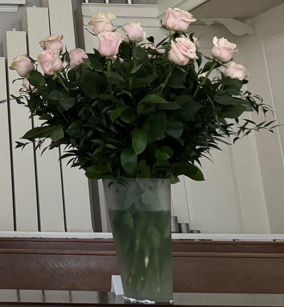 The flowers on the altar today are in loving memory of