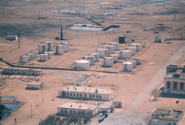 The Russians found some oil in the Gobi Desert and then built a refinery to process it into “mazut,” a low-grade gasoline, diesel for the train and kerosene for the “ger” lamps of Mongolia. At some point, the refinery had an explosion and the powers that existed at that time sent the Russians home and abandoned the facilities to the vagaries of the environment.