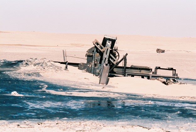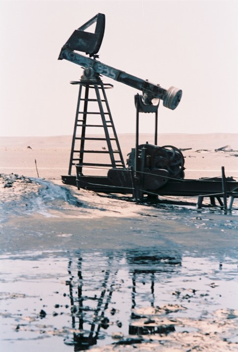 You will note in the left foreground the tanks are leaking crude oil but that is a drop in the bucket compared to the oil wells that continue to produce oil into the desert.