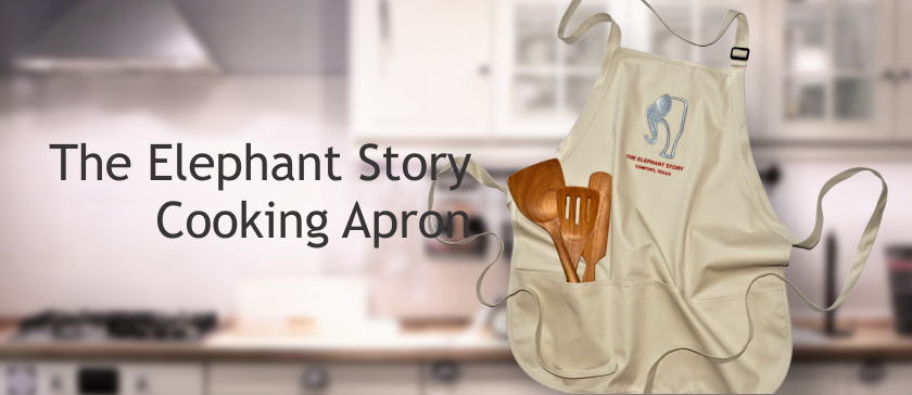Bring the luck of the elephant to your kitchen with our versatile apron that offers stain-release protection, generous pockets, long waist ties and an adjustable neck strap.