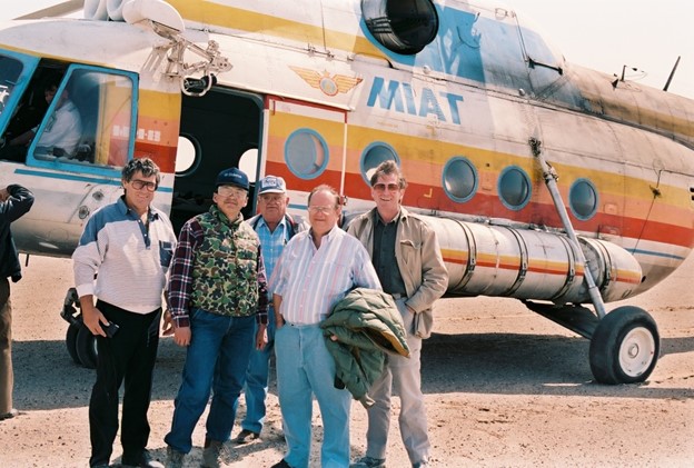 Mongolia broke free in 1991 and “Buddha Bill,” with his jacket under his arm, and “Indiana Jones” hopped on a very fatigued Russian helicopter to check out the oil fields in the Gobi Desert that the Russians had abandoned.
