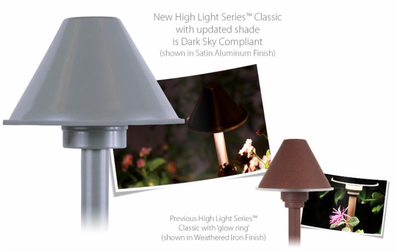 Previous versions of the High Light Series™ incorporated a soft 'glow ring' produced from the acrylic lens, but was visible from above 90°. Now with the new and improved shade, the acrylic lens is encompassed fully making the fixture Dark Sky compliant. For such a small fixture, this is huge! And of course the High Light Series™ is available in 3W BKSSL® Power of 'e' technology!
