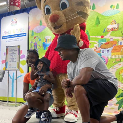 Booth activities this year included craft, play, and story time stations; along with a referral desk where families could sign up and learn more about Help Me Grow services and the Dolly Parton's Imagination Library of Ohio. On both Saturdays, PBS' Daniel Tiger stopped by for a meet-and-greet with about 450 children and adults! Free Daniel Tiger books were distributed throughout the fair's duration, along with over 1,800 tote bags full of branded goodies for pregnant individuals and families with children under age 3.