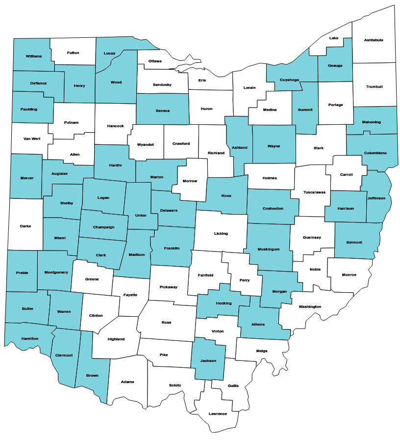 We would like to thank our collaborators at the Governor's Office; leadership at the Ohio Department of Health and the Ohio Department of Developmental Disabilities; and the outreach and intake staff statewide who worked the booth.