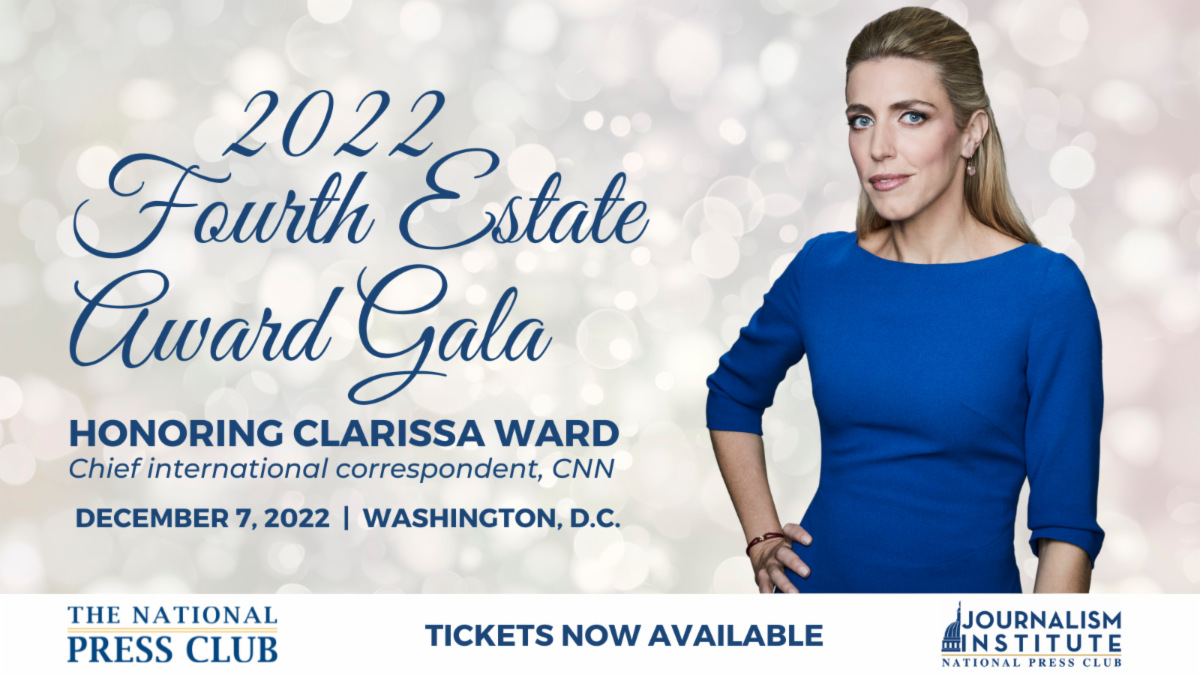 The Fourth Estate gala will begin with a reception at 6:30 p.m. followed by dinner and the awards program starting at 7:30 p.m. Tickets for the gala are $150 for National Press Club members, and $300 for members of the public.