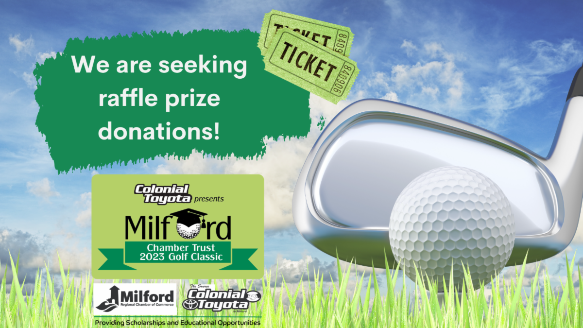 We are seeking donations of raffle prizes for the 2023 Colonial Toyota Milford Chamber Trust Golf Classic.