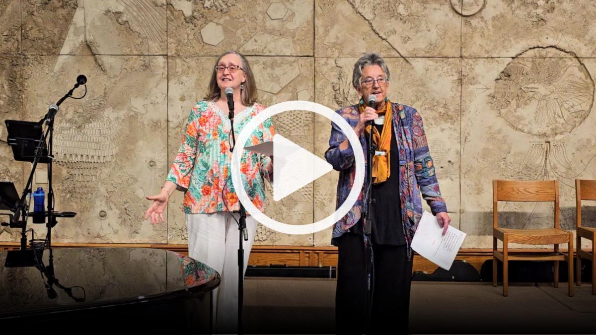 Karen Engelking and Darthe Jennings performed our new Mission Statement song, with the words written by Darthe. It was sung at Rev. Jullan's Farewell party as a tribute to Jullan's guidance to the Transition team who wrote the statement. The song provides some levity to the mission. Click HERE or the image to play. | | |