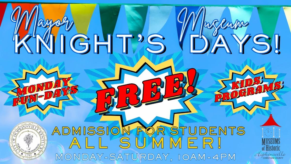 As we head into summer full swing, I encourage everyone to take advantage of the numerous community events happening throughout the city. Our water park is open and fully operational, offering a great way to beat the heat. Additionally, I am excited to announce the Mayor Knight's Museum Days at the Museums of Historic Hopkinsville-Christian County. Throughout the summer, the museum will be offering free admission for students and families, thanks to they city's successful funding efforts. This is a fantastic opportunity to explore and learn more about our local history.