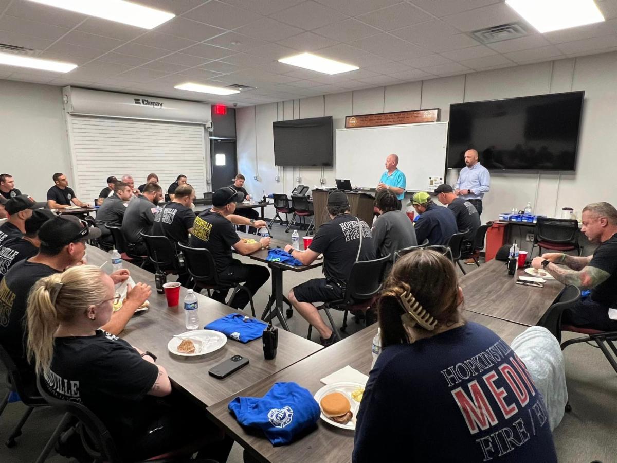 On May 21st, Mayor Knight spoke to EMS professionals during a luncheon celebrating EMS Appreciation Week. | On May 29th Hopkinsville Fire and EMS responded to a vehicle fire at the 9 mile maker of the Pennyrile Parkway northbound. No injuries were reported and traffic in the area was affected until the area could be cleared. | | |