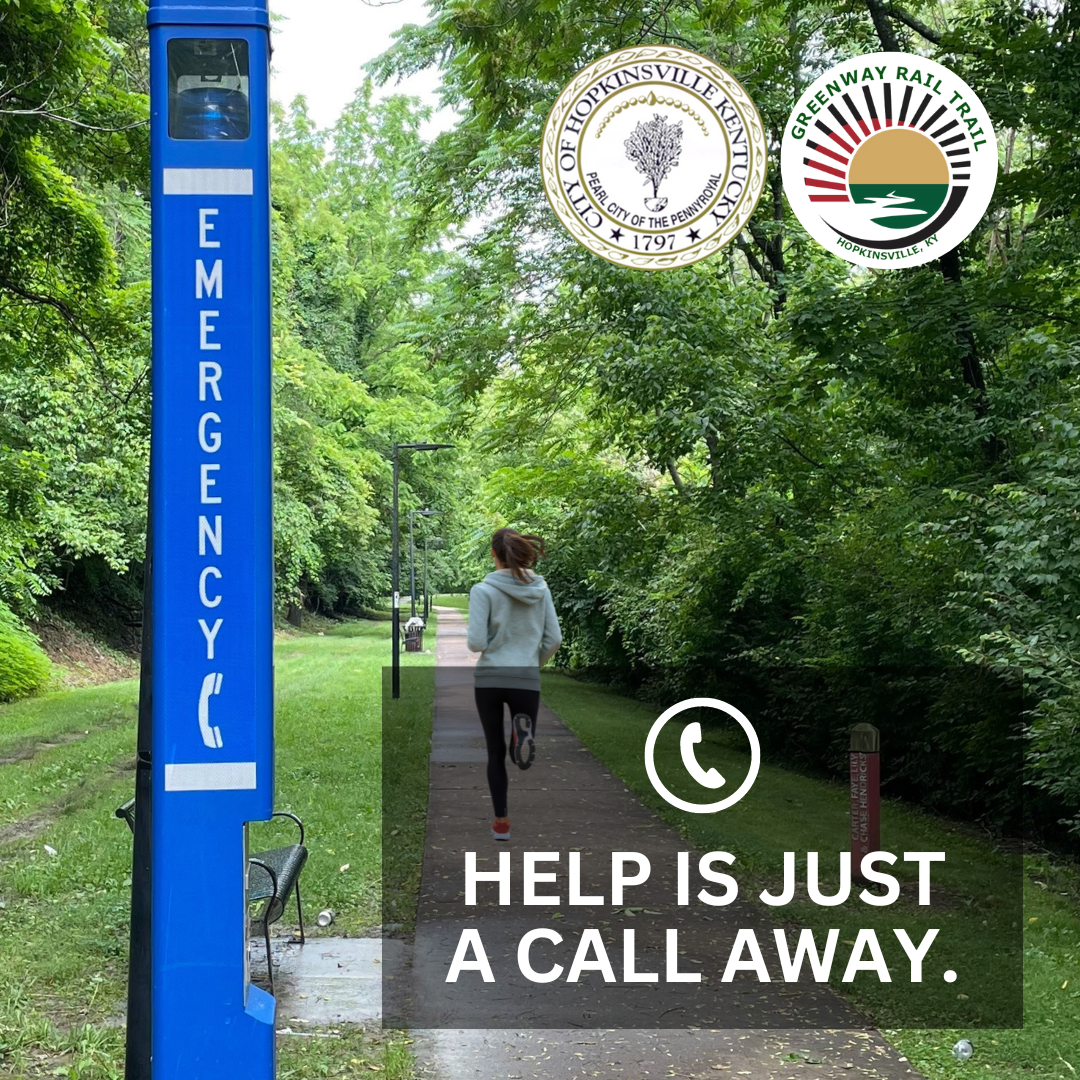 Emergency call boxes are installed along the Greenway Rail Trail. These call boxes are for your safety and convenience, connecting you directly to emergency personnel when needed.