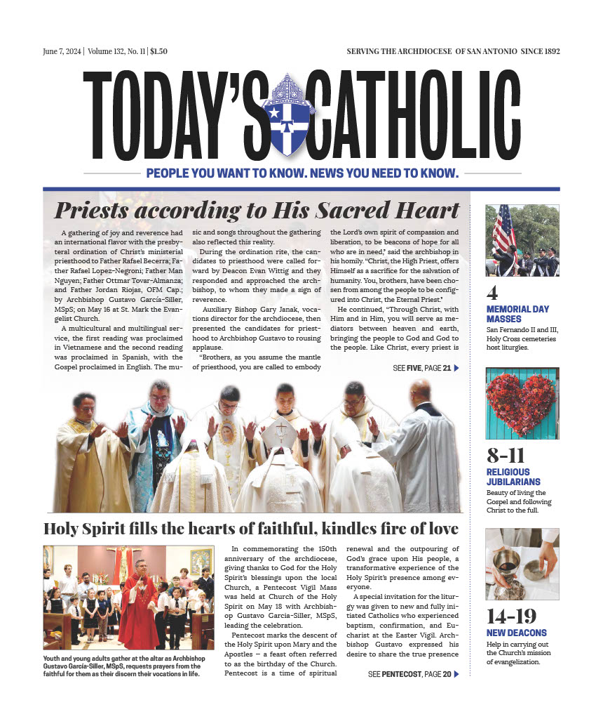 Veronica Markland | Today's Catholic Newspaper | A Mass of thanksgiving on June 1 at St. Elizabeth Ann Seton Church celebrated the completion of Cycle 6 of the spiritual director formation program from St. Peter Upon the Water: A Center for Spiritual Direction and Formation. Presider at the liturgy was Archbishop Gustavo García-Siller, MSpS, with concelebrants including Bishop Michael Sis of the Diocese of San Angelo, Auxiliary Bishop Michael Boulette, and pastors of the Cycle 6 participants. Certificates were presented to Leticia Alvarado; Lorraine Barela; Joseph Centeno; Deacon Joseph Cordova; Craig Cowley; Margaret Daily; Angie O. Garcia; Josefina Guajardo Garza; Juan Garza; Dee Ann Hernandez; Javier Hernandez; Leticia D. Huerta; Meghan Hunter; Julio Laguette; Rose Milecky; Father Jordan Milligan; Catherine Anne Morrow; Jeremy Olson; Alejandro Orbezo-Elizaga; Carolyn Parinello; Mary Jo Perley; Robert Quiñones; Sister Maria del Rosaria Resendez, OVISS; Sister Judy Scheffler, SSND; Letitica Sifuentes; Gabriela Terrazas Seyffert; and Karla Yen. | | |