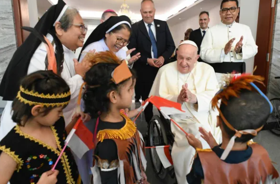 On Tuesday, upon arriving at the apostolic nunciature in Jakarta, the capital of Indonesia, he was welcomed by a group of refugees. | | |