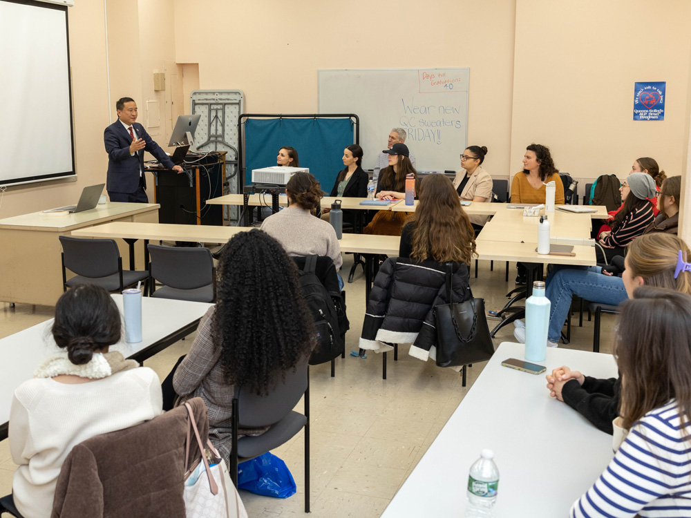 President Frank H. Wu welcomed the Queens Chamber of Commerce's Not-for-Profit Committee to QC on Friday, April 21. The committee seeks to advance the missions of the borough’s nonprofits—a category that includes many health care institutions, social service organizations, and of course, Queens College and its sister CUNY campuses. | |