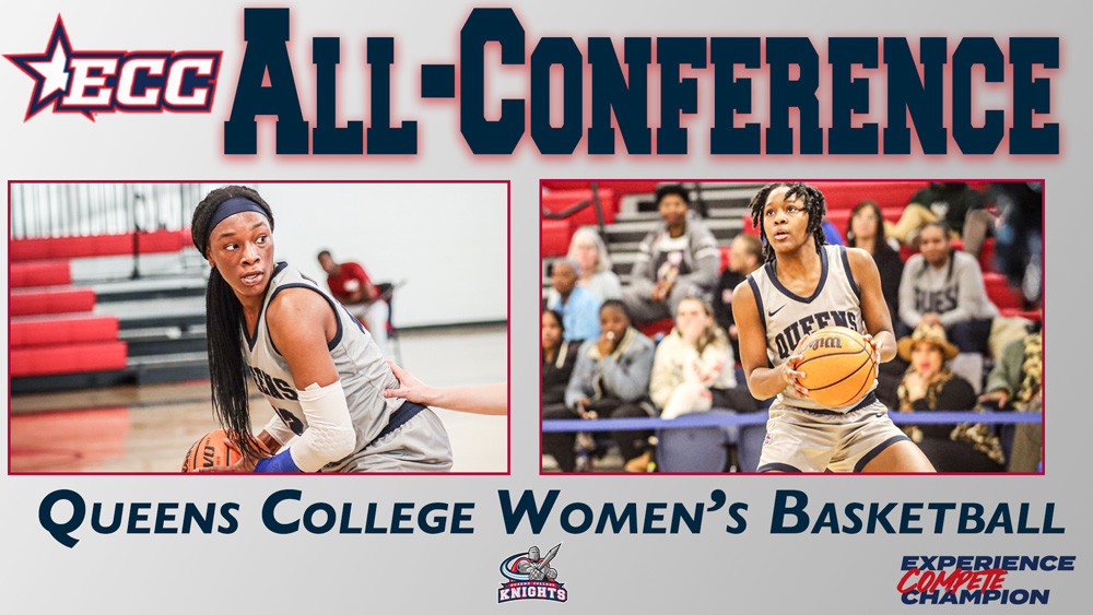 Queens College women’s basketball phenom Nkiru Awaka was selected as the East Coast Conference (ECC) Women’s Basketball Rookie of the Year and to the ECC All-Conference Third Team. Her teammate Brianna Davis, was named to the Second Team. On the men’s side, Sunnie Diamond was also a second-team selection and Malik Bentinck garnered third-team honors.