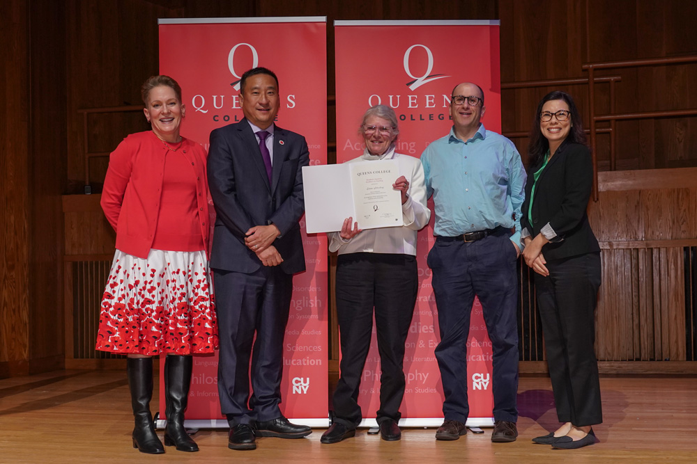 The Presidential Faculty Award for Diversity and Inclusion was presented to Jane Guskin (Urban Studies). JC Carlson, LGBTQIAA+ programs coordinator in the Department of Student Affairs and Enrollment Management and associate director of the CUNY LGBTQI+ Consortium, received the Presidential Staff Award for Diversity and Inclusion.