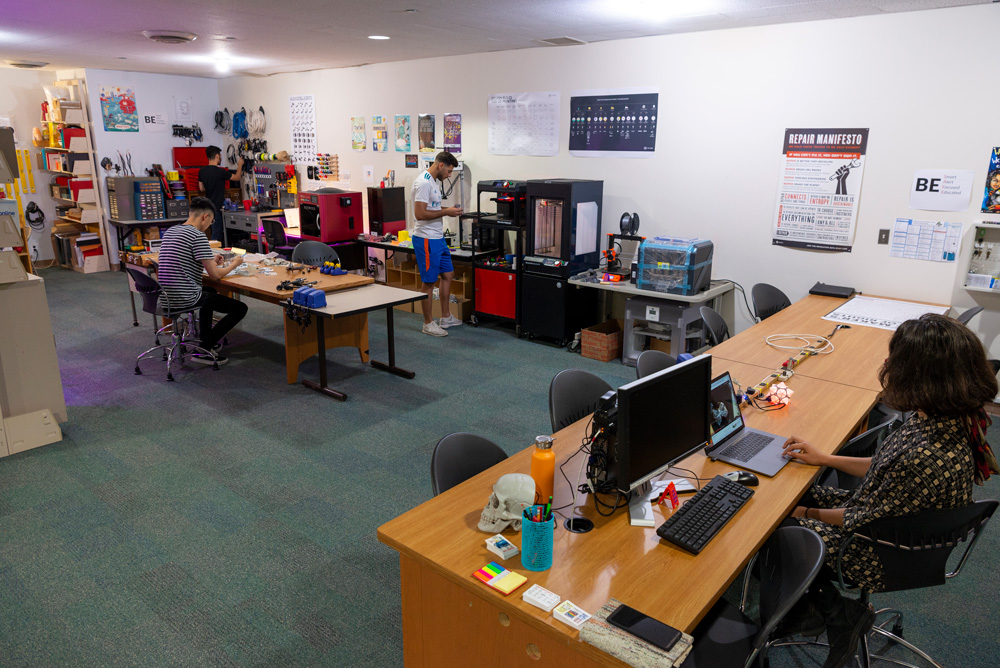 Normal has served as the head of the Makerspace since early 2018, when it launched as a residency program to gauge student interest. It has grown steadily. Since fall 2022, when students returned to campus following the COVID-19 pandemic, more than 500 students have attended the Makerspace orientation with students from 36 majors using the space at one time or another.