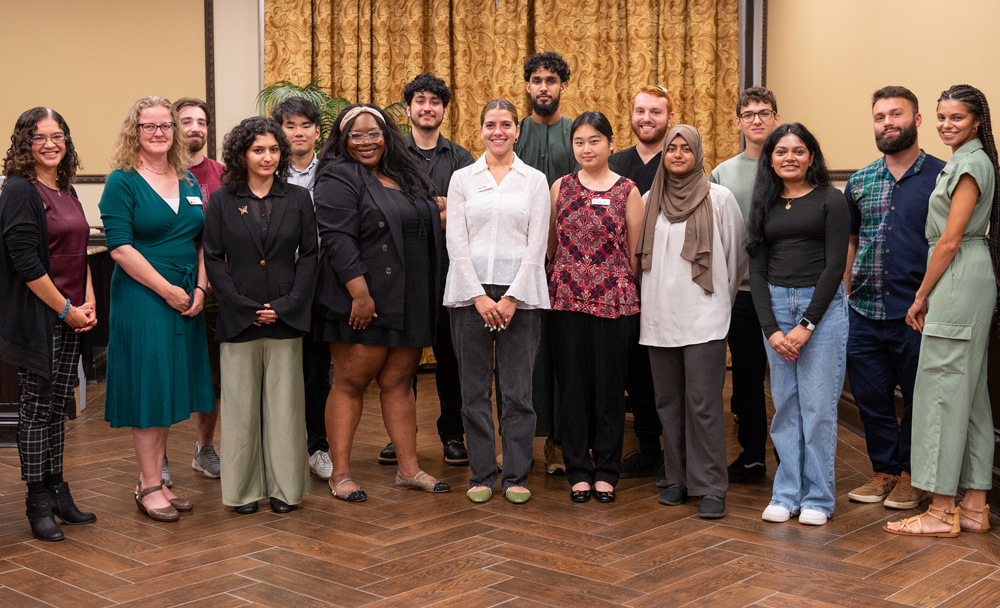 On Wednesday, September 11—a day as clear and balmy as it was 23 years ago—QC students, faculty, and staff gathered on the Quad for the college’s annual 9/11 Ceremony. Representatives of Campus Ministries laid a wreath and addressed the gathering. Student leaders also spoke. The QC Student Association collaborated with the Office of Student Affairs on the program. | Many members of the QC community were lost on 9/11; among them was Mohammed Salman Hamdani ’01, an EMT and medical school applicant who rushed to the World Trade Center to help victims instead of going to his job at a Rockefeller University lab. He is commemorated by a plaque near Benjamin S. Rosenthal Library, a QC scholarship named after him, and documentary, American Jedi: The Salman Hamdani Story (Documentary Film) (youtube.com). | Participants in the latest Ibrahim Leadership and Dialogue Middle East Program Apply | Ibrahim (ibrahimleadership.org) gave presentations on Thursday, September 12. Last summer’s itinerary included destinations in Egypt and the United Arab Emirates. Through the Ibrahim program, student leaders of all backgrounds learn about and travel to countries in the Middle East. | On September 13, President Frank H. Wu toured the Lexington School for the Deaf with New York State Assemblymember Rebecca Seawright, chair of the Committee on People With Disabilities, and Vice President for Communications and Marketing and Senior Advisor to the President Jay Hershenson. Meeting with staff and executives of the East Elmhurst school, they discussed potential collaborations to provide more opportunities for Lexington graduates to attend Queens College and to work together on grant proposals and partnerships. | From left: Lexington staff members Jane Moran and Adele Agin; President Frank H. Wu; Assemblymember Rebecca Seawright; Lexington Interim Superintendent and CEO Seth Bravin; Lexington Human Resources Director Patricia Schoenfeld; and Vice President for Communications and Marketing and Senior Advisor to the President Jay Hershenson. | From left: Chabad on Campus of Queens Rabbi Shaul Wertheimer, President Frank H. Wu, Vice President for Communications and Marketing and Senior Advisor to the President Jay Hershenson | Attesting to the diversity at Queens College, Chabad on Campus of Queens hosted the Let Here Be Light Festival on the Quad at free hour on Monday, September 16 . . . . | . . . . while Bishop Robert J. Brennan of the Brooklyn Diocese (center, back row) visited for the dedication of the chapel at QC's Newman Center. Brennan is flanked by Stacey Romano, Director, Office of the President and Rev. Jose Diaz, priest chaplain at the Newman Center, and President Frank H. Wu. | Forgoing a lunch break, listeners took seats in Rosenthal 230 for SEEK's September 16 event, The Future is in Your Hands: Youth Votes Matter. Lieutenant Governor Antonio Delgado, recipient of the President's Award at Queens College's Commencement in 2023, was among the speakers. | | |