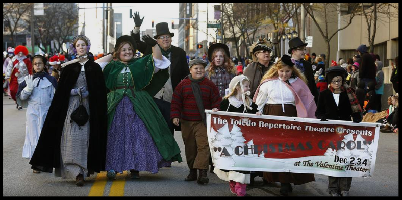 A Christmas Carol sang in the Blade Holiday Parade in Downtown Toledo.