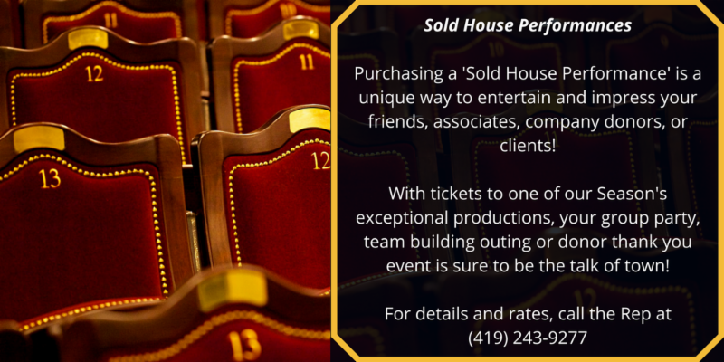 Ticket sales only cover a portion of the costs to operate the Toledo Repertoire Theatre. In order to continue providing all that we do to the Toledo community, we rely upon the help of many generous sponsors every season.