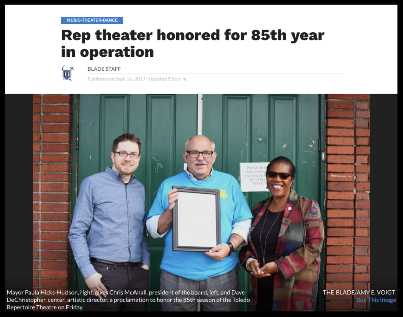 "We are honored to be getting this recognition from the mayor and the city at the beginning of our 85th season," Mr. McAnall said. "The Rep has been a steadfast contributor to the performing arts in Toledo since 1933. Our theater has been through the Great Depression, the rise and decline of business in downtown Toledo, and now the resurgence of development that we're seeing today.