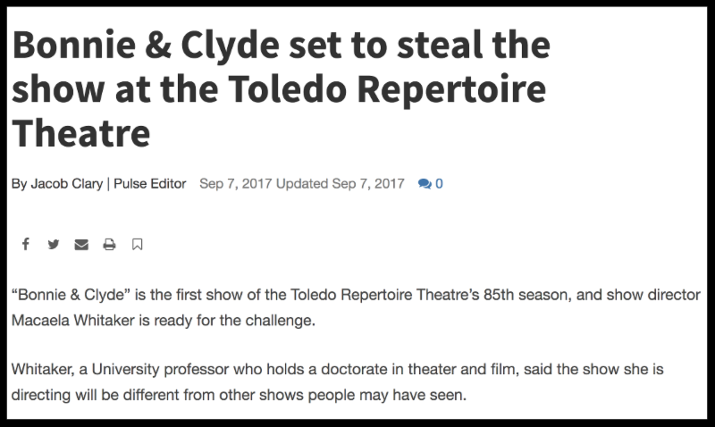 "It was at the height of Bonnie and Clyde's fame, from 1933-1934, that up north in Toledo, Ohio, a new theater company known as the Toledo Repertoire Company was working its way through its very first season. Eighty-five years later, the Toledo Rep is still going strong," said Christopher McAnall, The Rep's President.