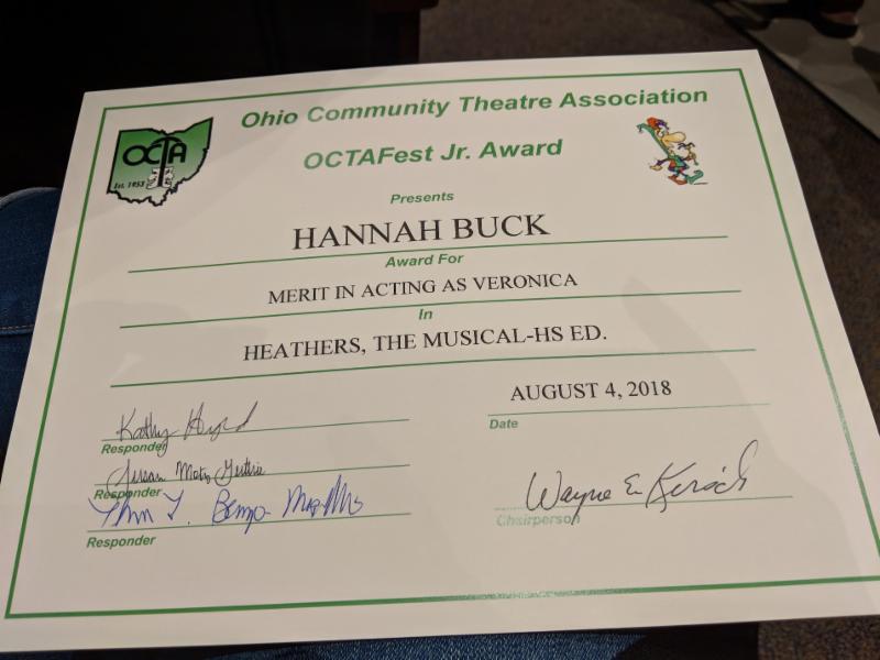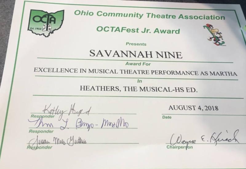 On August 4th our phenomenal cast of Heathers the Musical (High School Edition) competed at OCTA Jr. Our teens did an outstanding job representing the talented youth that we have at the Toledo Rep