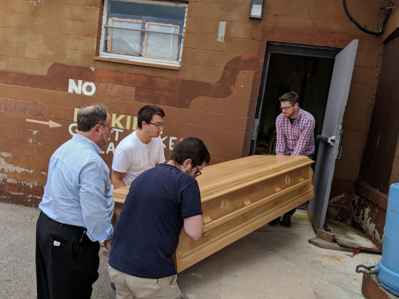 Our FUN HOME really started to take shape, thanks to our shiny new casket that was graciously gifted to us by