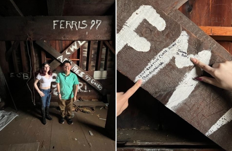 Many thanks to Ed C. for taking our confirmands up into the bell tower to historically document their confirmation. Last weekend, Bella S. and Max G. bravely climbed the bell tower's steep stairs to view prior confirmation classes signatures and added their names to this rich history of documenting this important event in the life of this church.