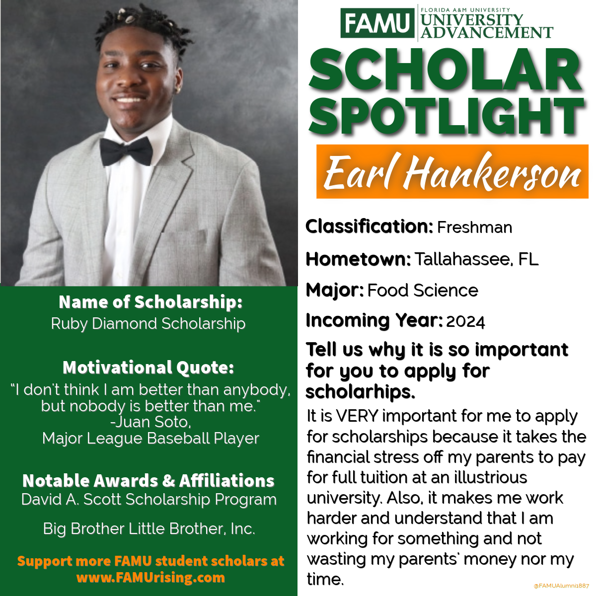 Please remember, we need you as mentors, advocates, and donors. Work just as hard for FAMU in the future as you do right now, for FAMU’s future success depends on it. Together we must all Keep “Striking from the Top!”