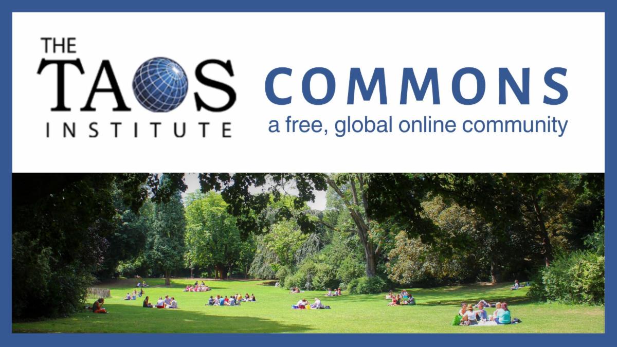 Join with over 1600 members from around the world in the Taos Institute Commons online community as we explore social constructionist, relational, and appreciative theory and practices. We invite you to attend the free events in the Commons to engage in rich dialogue, share valuable resources, watch event replays, and make meaningful connections with others interested in creating more promising futures, one conversation at a time. More details here. | |