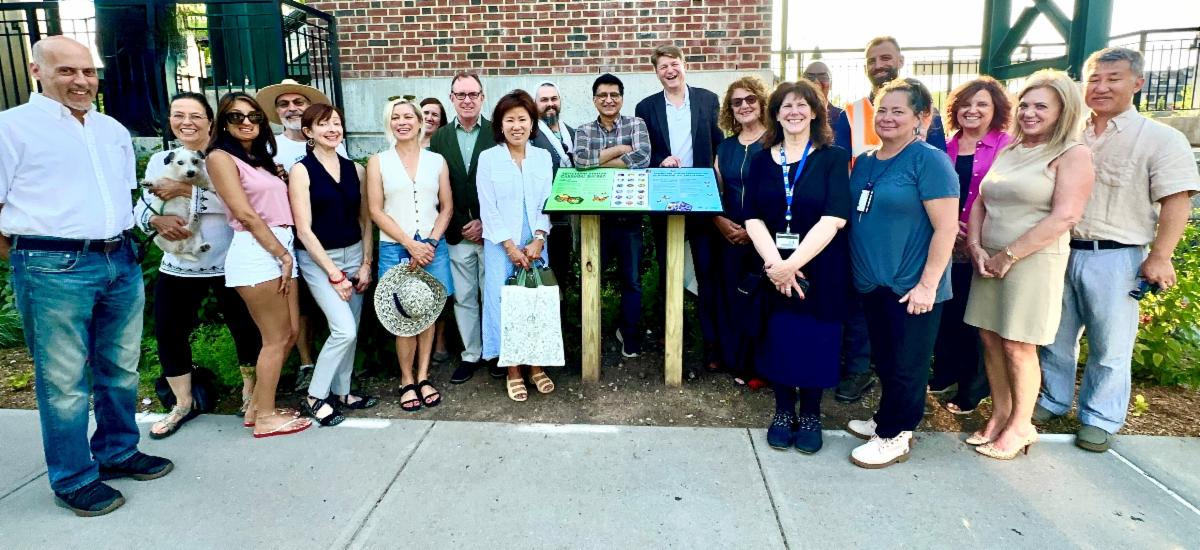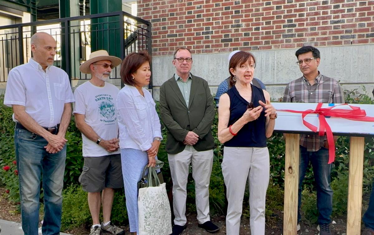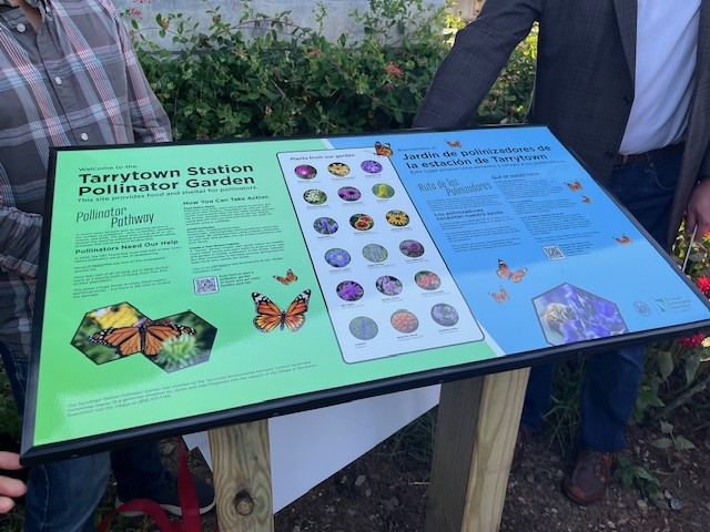 On Monday, June 17, the Mayor and Board gathered to cut the ribbon on a new group of pollinator plantings at the Tarrytown Metro North Station, an important gateway to the Village that is now made brighter by the hard work of the TEAC Landscape Committee led by Mai Mai Margules, the Department of Public Works, and many volunteers. A new informational sign was designed by resident Jason Williams. James and Oak Fitzgerald are Tarrytown residents who have donated funds to this planting site and other TEAC efforts, and hope to encourage other local individuals and businesses to support projects like these which beautify the Village while improving the local ecosystem. Many thanks to Metro North for their partnership on this project. | |