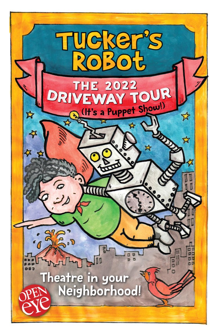 Tucker is a young boy who needs to go back in time to face a group of neighborhood bullies. How do you go back in time? With a time-traveling robot, of course! Together, Tucker and his robot discover the importance of friendship and the courage to face bullies. Full of surprises, a little danger and some really funny characters. Contains puppetry, live music, and fun for families and children of all ages. Learn more about Open Eye Theatre's Driveway Tour here.