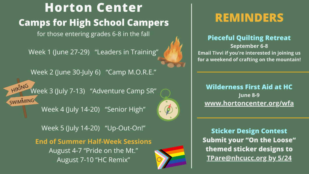 Do you know a camper who is entering 9th-12th grade in the fall or who just graduated high school? Do they love spending time outside, meeting new friends, and trying new fun things? Give them the incredible gift of a week at Horton Center! All summer long we have awesome camps for our high school-aged campers. Check out the whole camp schedule HERE.