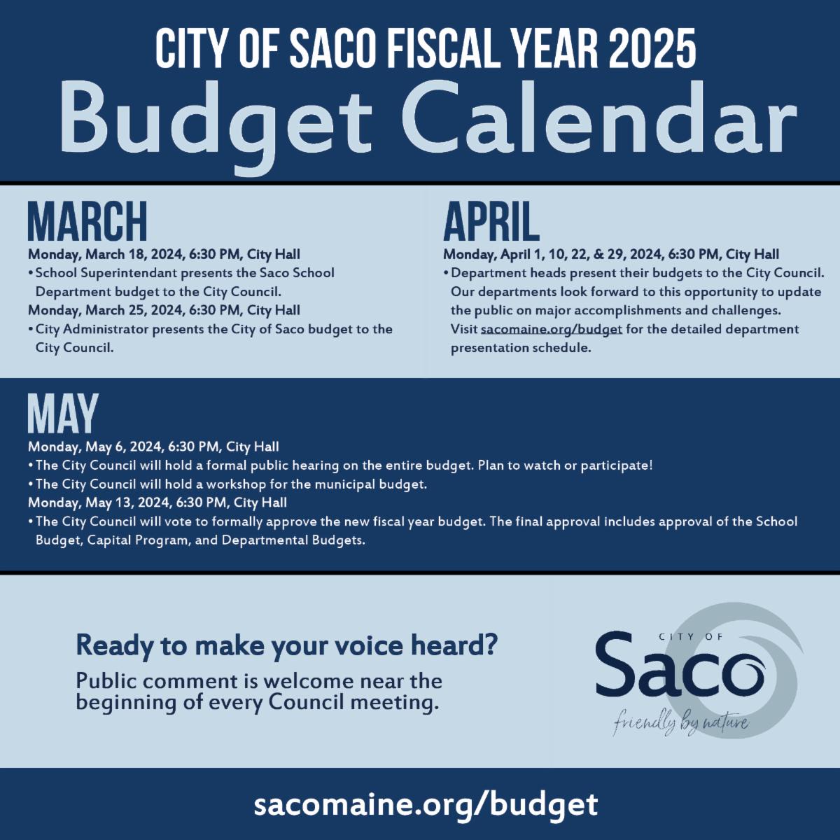 Saco's Fiscal Year 2025 City Budget Available for Review | |