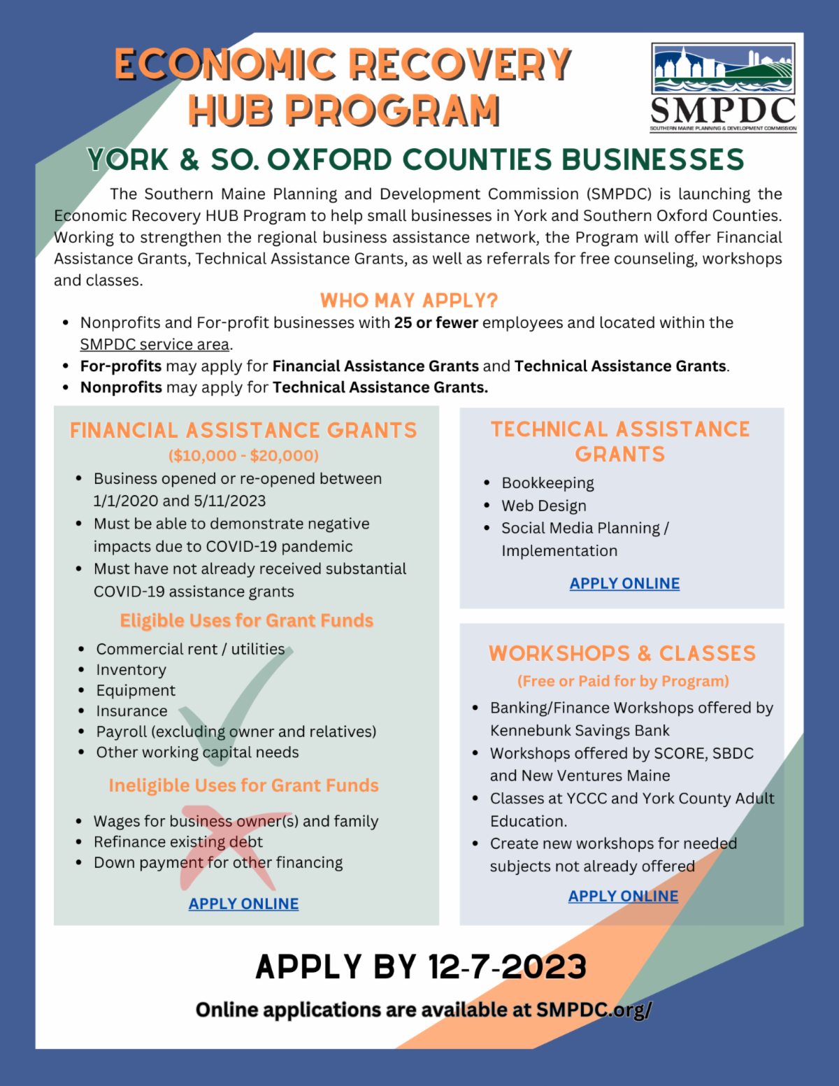 For more information and eligibility, please visit SMPDC Economic Recovery Hub Program