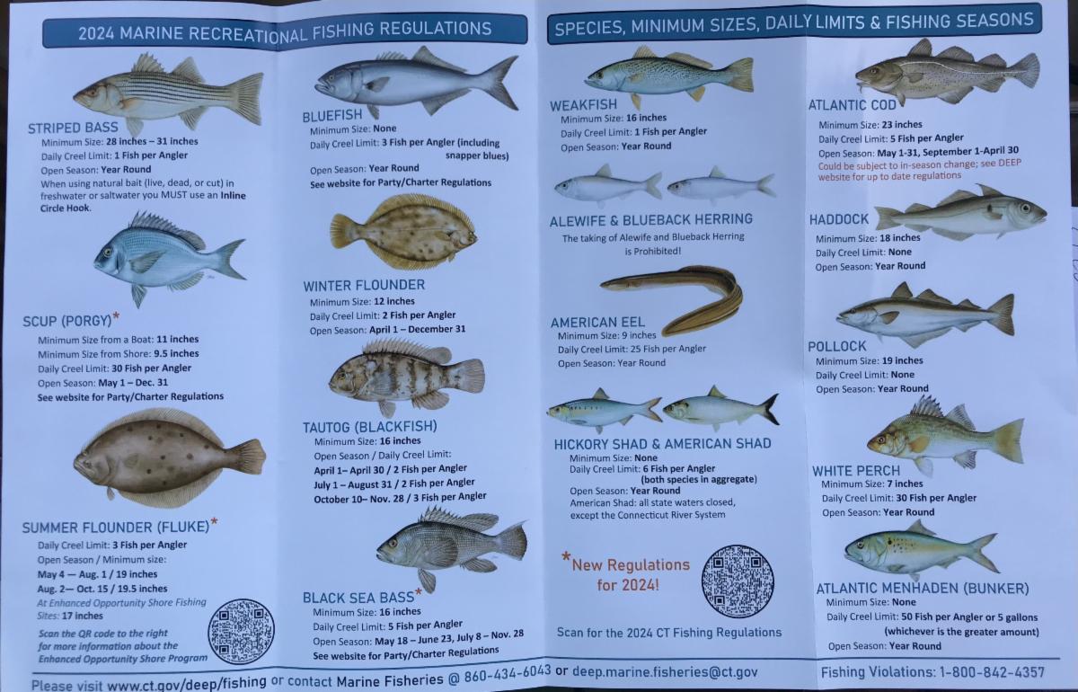 With over 100 species of fish found in Long Island Sound, anglers can enjoy some of the very best striped bass, bluefish, summer flounder, scup, hickory shad, black sea bass and tautog fishing along the entire coast. The State of Connecticut offers anglers many fishing opportunities with excellent boat launches along the coast and great shore fishing locations at coastal state and city parks, and convenient party and charter boat fishing.