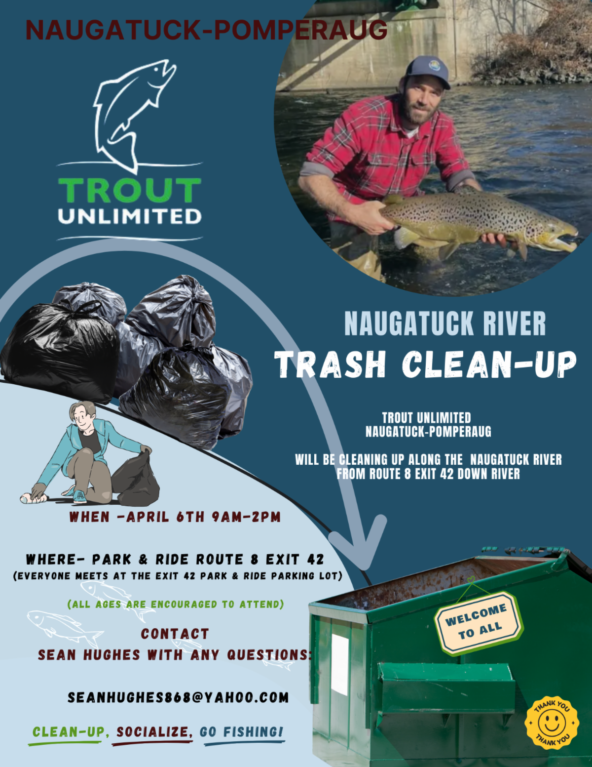 Farmington River Anglers Association: The Farmington River Anglers Association is holding their annual river cleanup on Saturday April 20th from 9-1, rain or shine. Location is the Hurley Building parking lot, 37 Greenwoods Road, New Hartford.