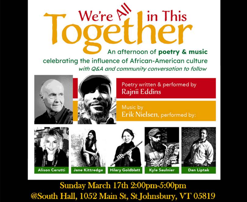 Catamount Arts presents "We’re All in This Together,” an afternoon of poetry by Rajnii Eddins and music by Erik Nielsen celebrating the influence of African-American culture.