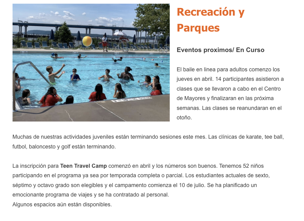 Reminder to residents they can register for our classes on-line. Residents should create their own Community Pass account. This is done by going to the general registration page, https://register.communitypass.net and then type in the name of our organization which is Village of Sleepy Hollow, NY. Once your account is created, you will receive an e-mail that contains your log in information. If you have any questions, call the recreation department at 366-5109.