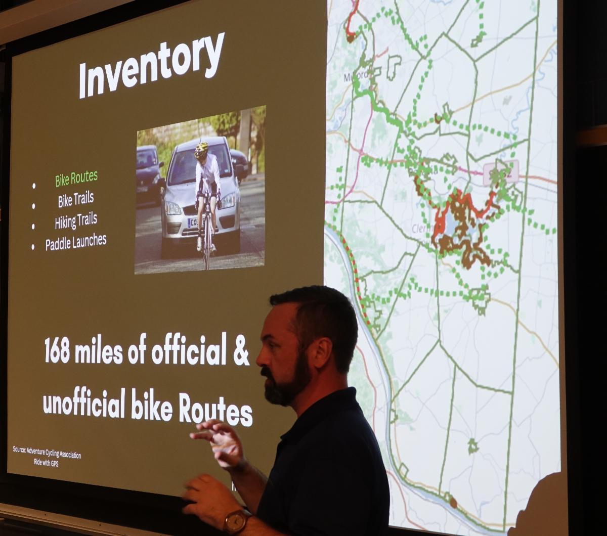 Attendees included representatives from townships, municipalities, Clermont County Parks, Clermont County Convention and Visitors Bureau, ODOT and bicycling and trails groups. CED experts shared initial research regarding existing trails, bike, and paddling routes, possible funding sources, planning needs and the like. They gathered feedback from attendees and discussed next steps.