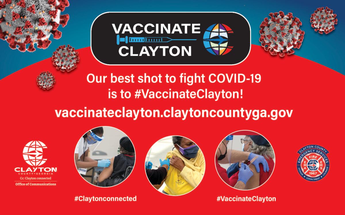| Our best shot to fight COVID-19 to #VaccinateClayton! For more information about Vaccinate Clayton, access https://vaccinateclayton.claytoncountyga.gov/ #VaccinateClayton #Claytonconnected | | |